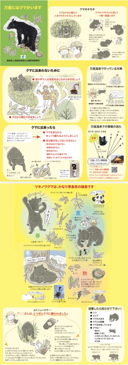 また、万座しぜん情報館では下記のツキノワグマのリーフレットを無料配布しております。