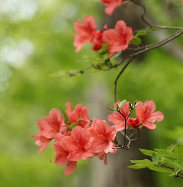 新緑に深紅が映えるヤマツツジ。