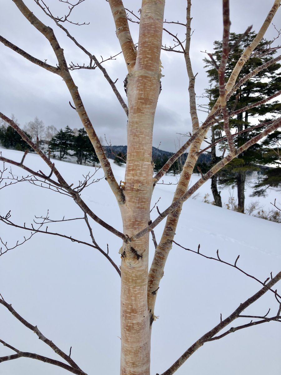 ダケカンバは灰色のような樹皮が薄い紙のように剥げ、肌色っぽくなっているので見分けやすいです。(老木のダケカンバはバキバキに樹皮が剥がれます)
