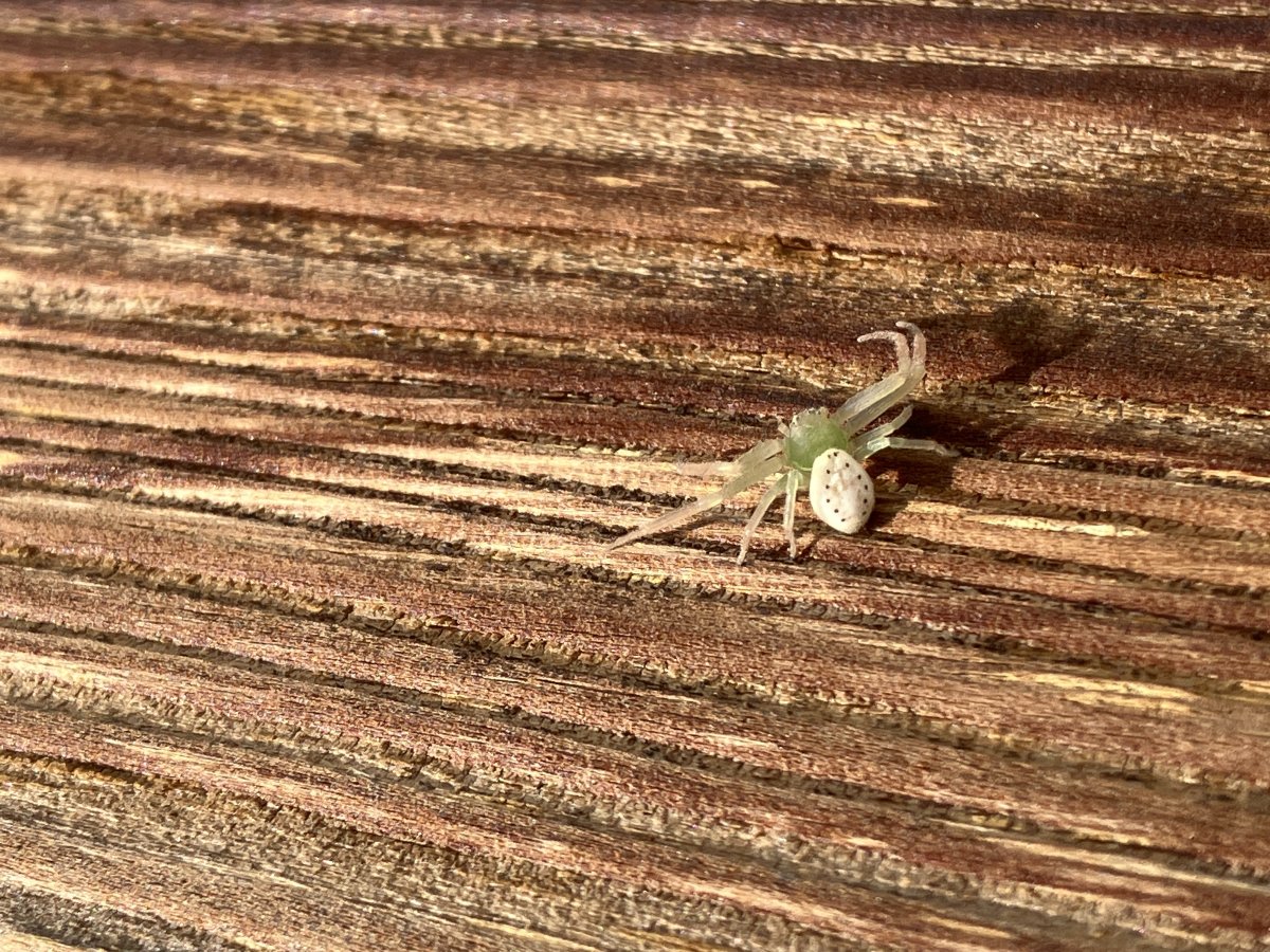 腹背にはうっすら褐色班がみられるのでコハナグモかなと思います。